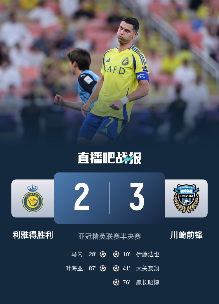 05月01日讯 亚冠半决赛川崎前锋3-2击败利雅得胜利,闯入亚冠决赛将战西区第2吉达国民。